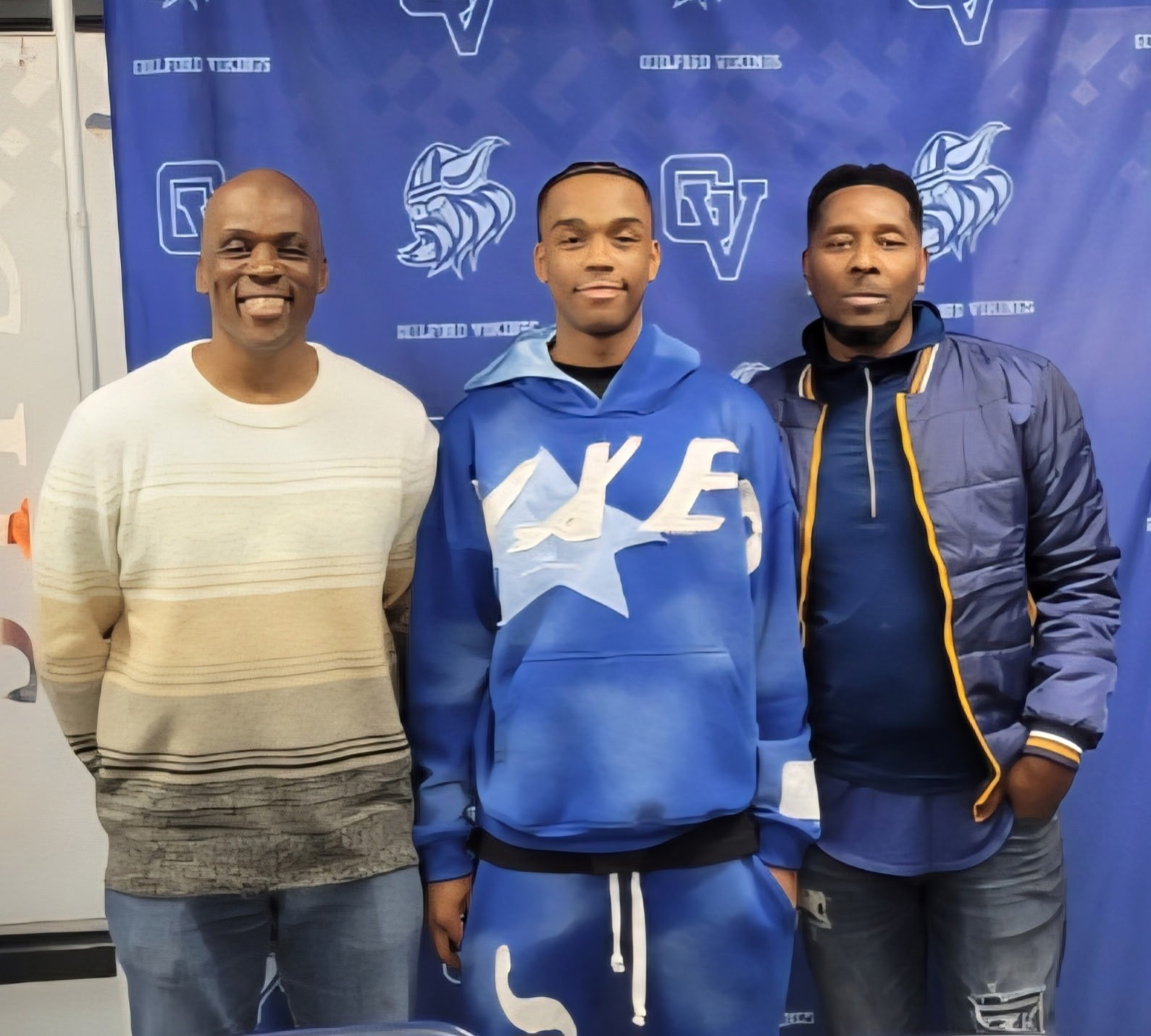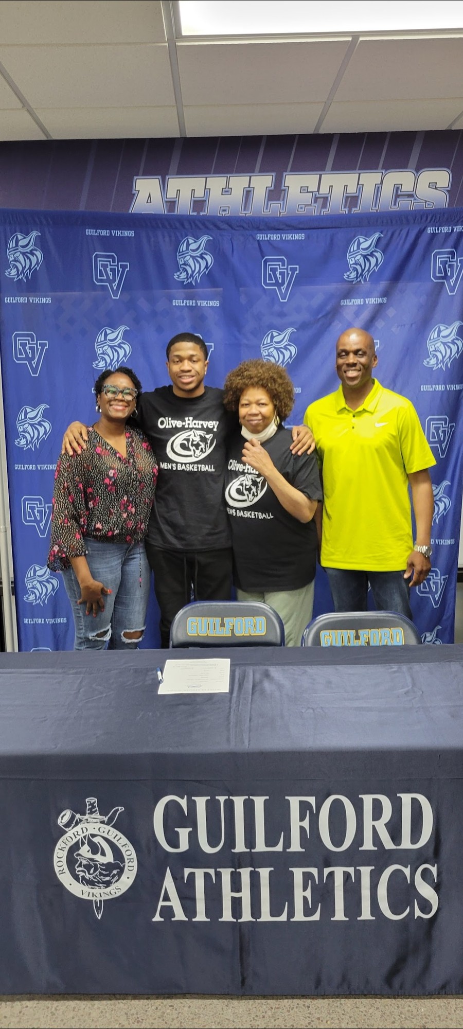 Coach Baker with former NIC10 All-Conference Forward, Cinco Gary at Coach Baker's Alma Mater as well Rockford Guilford High School. Celebrating Cinco's signing to Olive Harvey College.