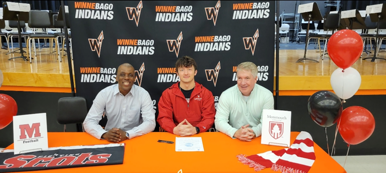 Coach Baker with former Winnebago and Rockford Elite player Kaiden Steurer's signing to play football at Monmouth University.