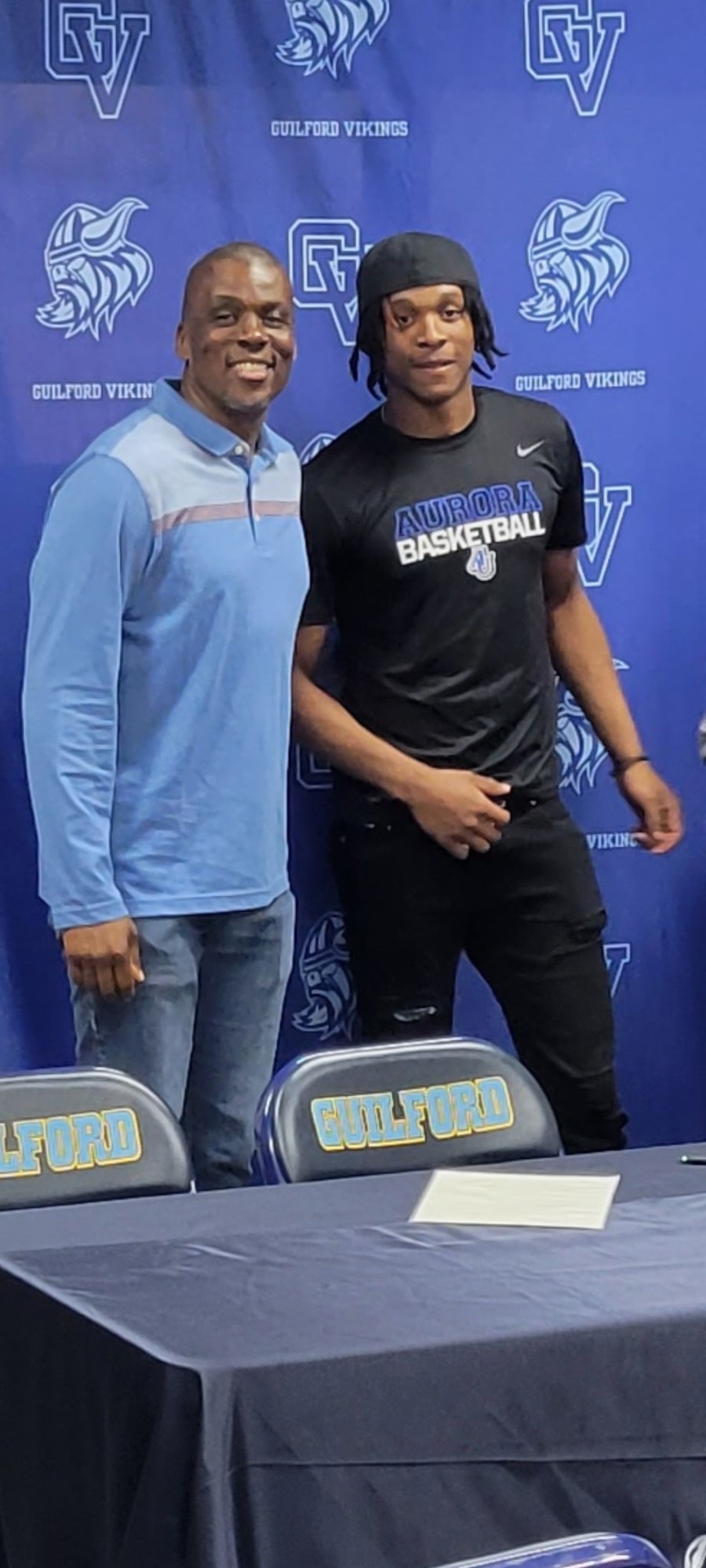 Coach Baker with former Rockford Elite stand-out NIC-10 player Michael Jalil Jones (Guilford High School) on his signing day with Aurora University!