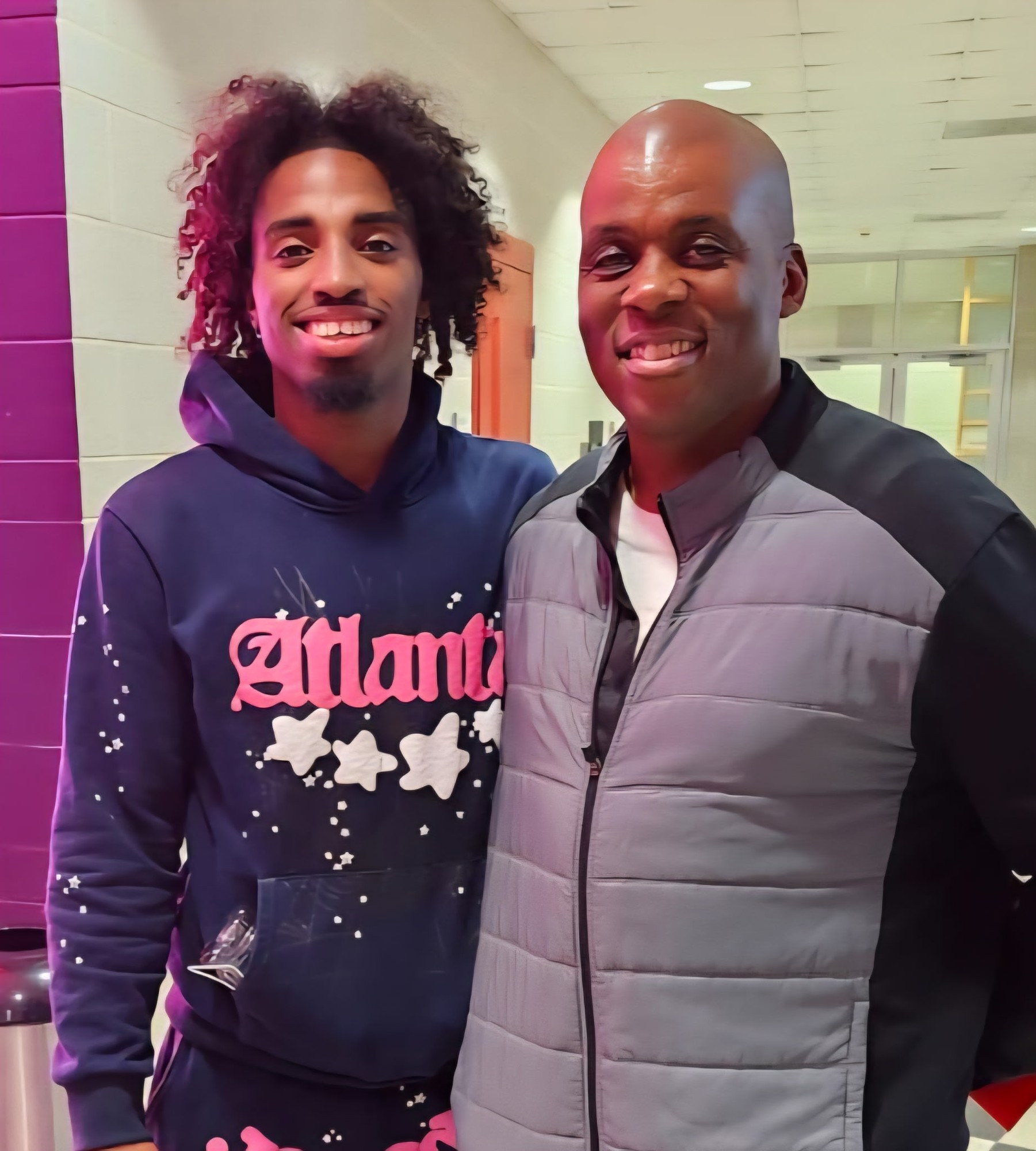 Winter 2024: Coach Baker with former Rockford Christian all-state player Marcus Hill, Jr. after his college game! Marcus played for Division 1 North Carolina State during the 2024-25 season!