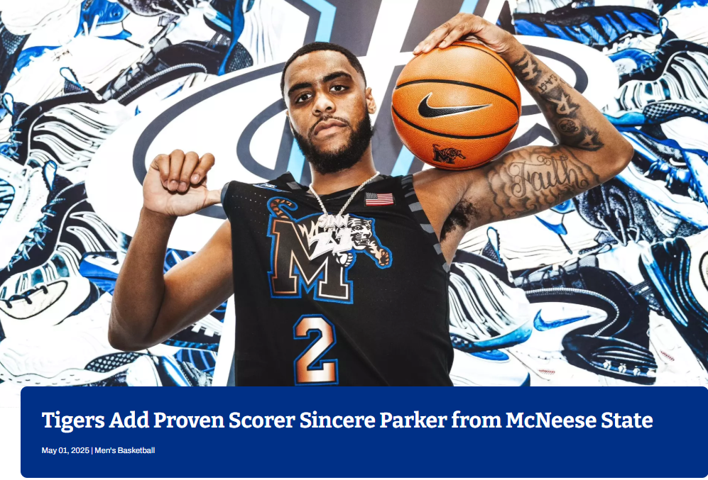 Sincere Parker, fresh off a second-round NCAA appearance with McNeese State, signs with the University of Memphis for his last year of college eligibility in 25-26. Good luck, Sincere!